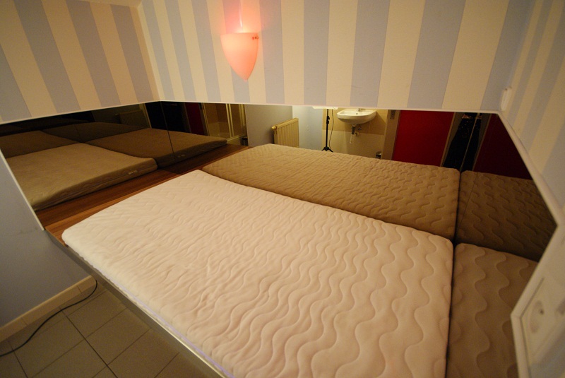 Samozřejmostí je pohodlná postel obložená zrcadly, intimní osvětlení a erotická atmosféra.